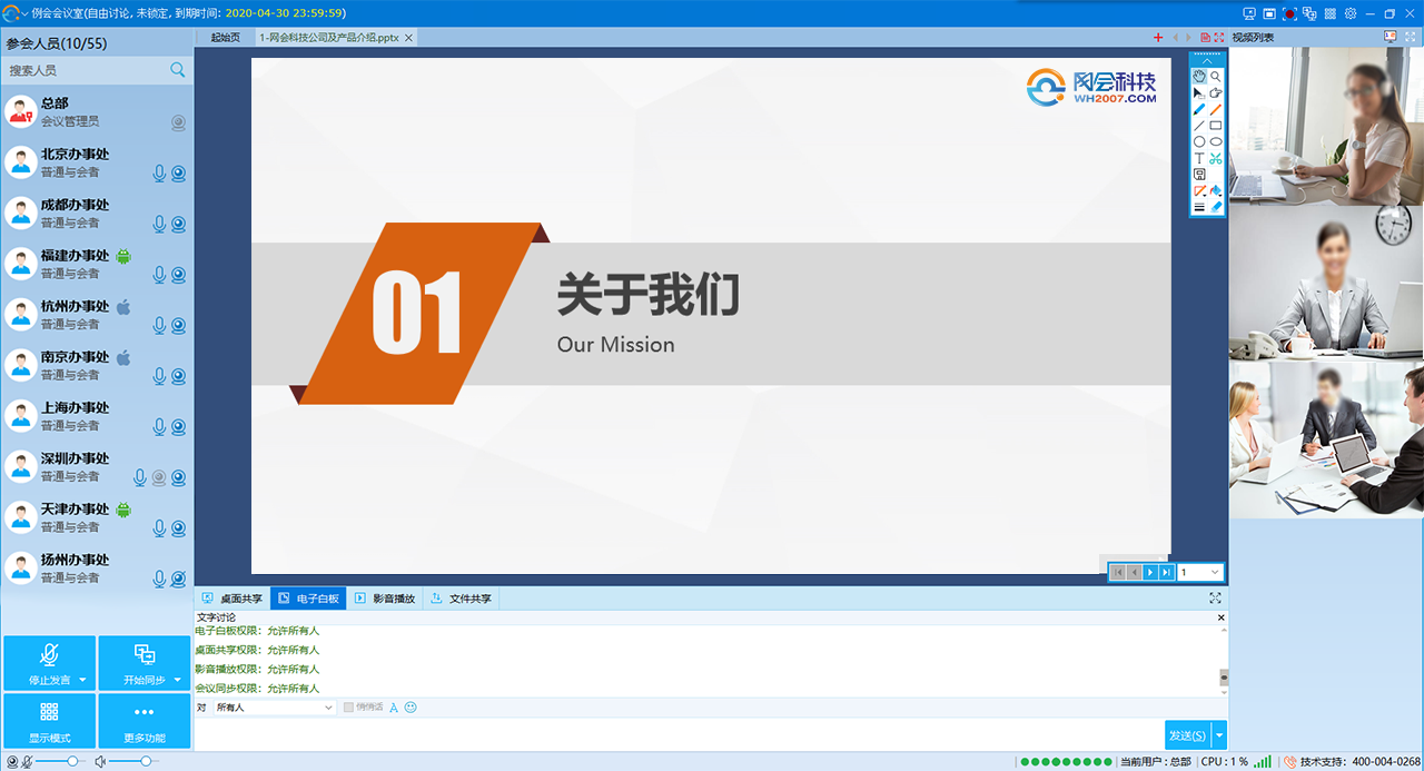 網會科技是中國領先的遠程視頻會議軟件以及視頻會議系統(tǒng)、網絡視頻會議全面應用解決方案的供應商.產品涵蓋軟硬件視頻會議系統(tǒng)、視頻智能錄播系統(tǒng)等 請撥400-004-0268。